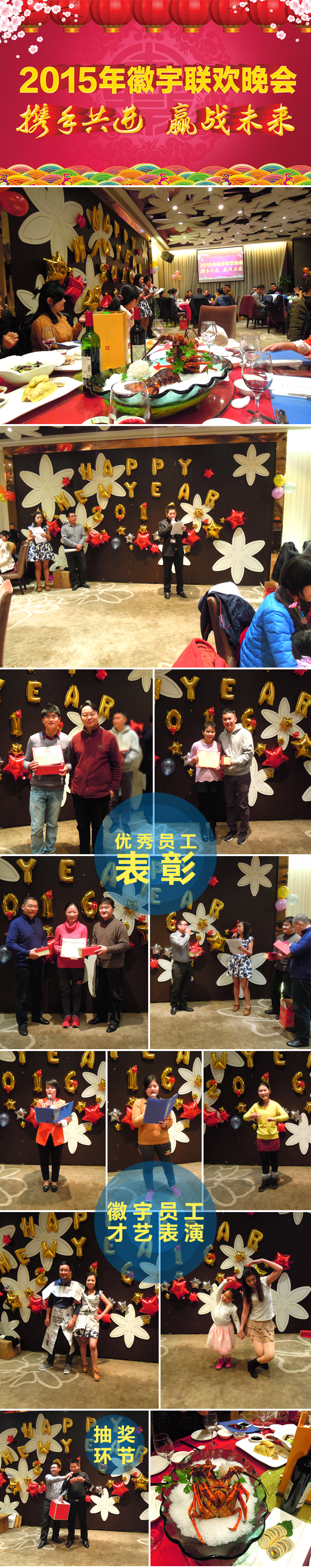 上海徽宇電子科技有限公司2015年年會與往年相比有所不同,今年年會邀請了各大品牌商經理參加,并增加了節(jié)目表演環(huán)節(jié),使得年會的氣氛更加濃厚!