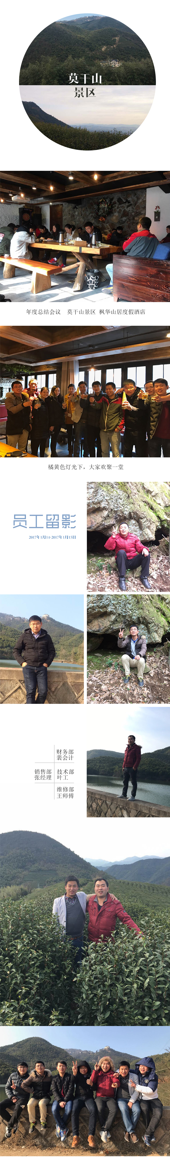 本次年會(huì)是暨2016年年度總結(jié)會(huì)議與景區(qū)觀光游覽相結(jié)合的一次活動(dòng)。會(huì)議中,大家暢所欲言,總結(jié)工作,規(guī)劃未來(lái);同時(shí),景區(qū)秀麗多姿的景色及酒店溫馨復(fù)古的環(huán)境也使全體員工體驗(yàn)了一次獨(dú)特的年會(huì)。