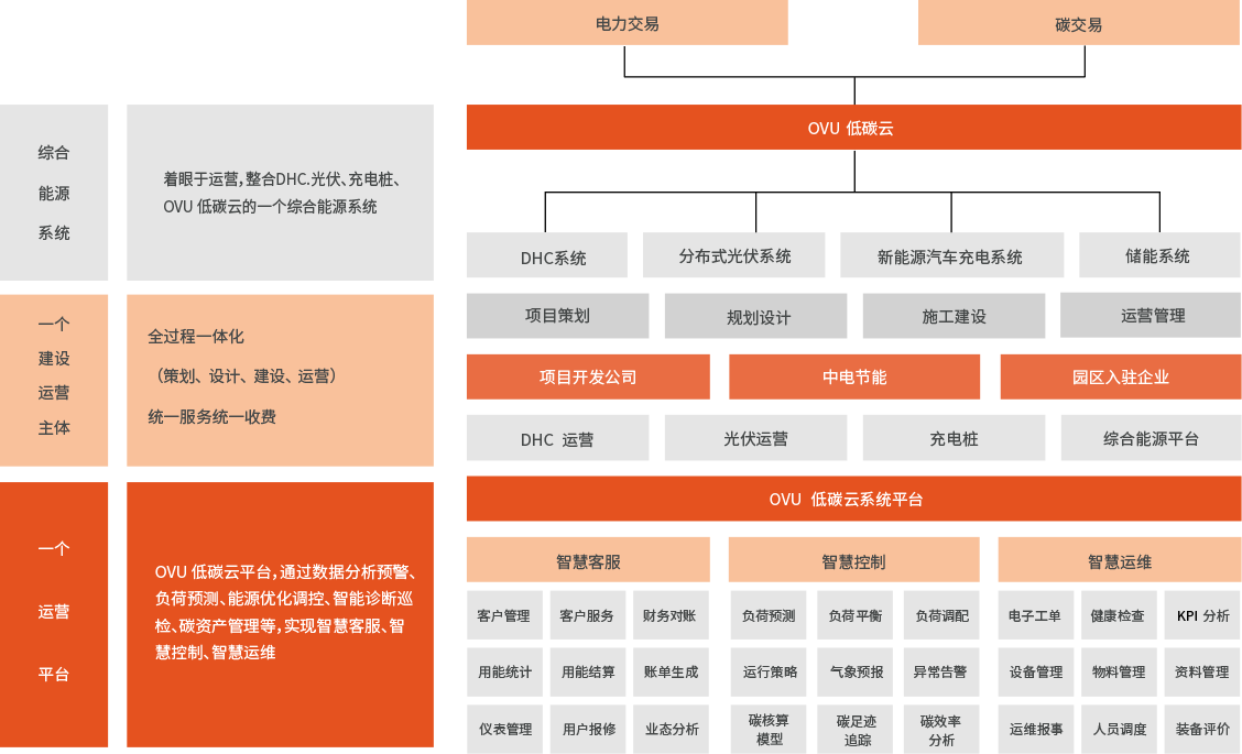 中電節(jié)能是專業(yè)提供綜合能源服務(wù)和低碳智慧園區(qū)投資、建設(shè)、運營全產(chǎn)業(yè)鏈服務(wù)的高新技術(shù)企業(yè)。公司依托中電光谷產(chǎn)業(yè)鏈優(yōu)勢,融合IT、OT、暖通、配電、裝備、運營等多個專業(yè),傾力打造 OVU 低碳云,采用大數(shù)據(jù) + 云計算 + 物聯(lián)網(wǎng)技術(shù)及云化分布型微服務(wù)架構(gòu),提供踐行綜合能源“雙碳路徑”的數(shù)字化解決方案。該系統(tǒng)是國內(nèi)首個基于 PKS 體系具有實驗、生產(chǎn)雙功能的綜合能源低碳數(shù)字化系統(tǒng),以綜合能源服務(wù)的理念為核心,集成了低碳智慧園區(qū)服務(wù)為重點的“1+N”產(chǎn)業(yè)生態(tài)業(yè)務(wù)體系。